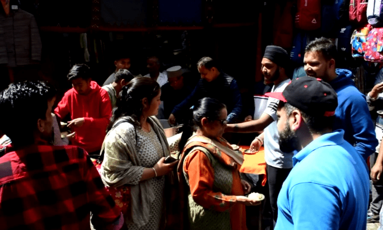 देवभूमि कुल्लू में हनुमान जन्मोत्सव पर सरवरी बाजार में बांटा प्रसाद